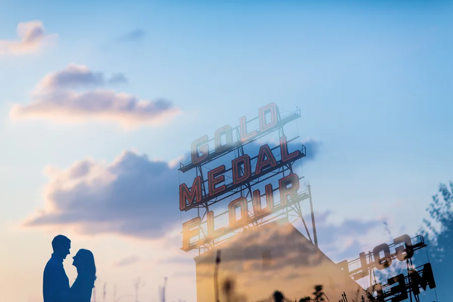 We love it when engagement sessions take on a personal note. Sheila & Tom spend a lot of their free time hanging out at the lakes so it only made sense to start their session at Lake Calhoun--added bonus, they rented a tandem bicycle for the shoot! After cruising around the lakes we headed over to Mill City--a nod to their first meeting when they first met working at General Mills.